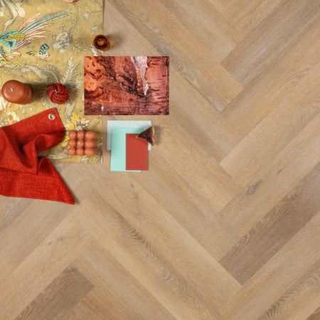 Met zijn matte, lichtbruine uitstraling straalt de Ruby Herringbone Dryback een onmiskenbare warme en huiselijke sfeer uit. Perfect afgestemd op interieurs met een Scandinavische of rustieke flair, vormt deze vloer een harmonieuze basis. De subtiele kleur van de Ruby Herringbone creëert een ambiance van ontspannen luxe, terwijl hij geluiddempend, perfect voor vloerverwarming en -koeling, 100% waterbestendig is, en een warm, hygiënisch en natuurgetrouw oppervlak biedt dat ook nog eens eenvoudig te onderhouden is.