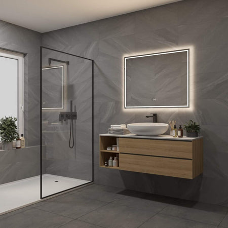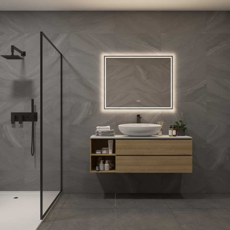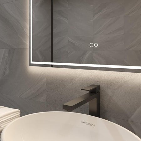 Fraaie, moderne LED spiegel met een hoge lichtopbrengst! Deze badkamer spiegel is 90 cm breed, 70 cm hoog en slechts 3 cm diep. Naast geïntegreerde verlichting beschikt deze spiegel ook over spiegelverwarming tegen het beslaan van de spiegel en een dubbele touch schakelaar.