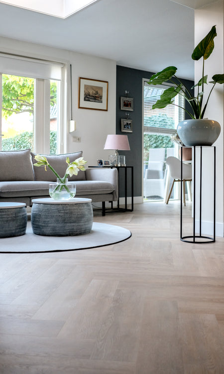 De visgraat planken uit de Belakos pvc-collectie zijn ideaal voor zowel moderne als klassieke interieurs. Het visgraatpatroon benadrukt een elegante en authentieke uitstraling. De Belakos pvc-vloeren zijn geschikt voor zowel woninginrichting als projectinrichting.