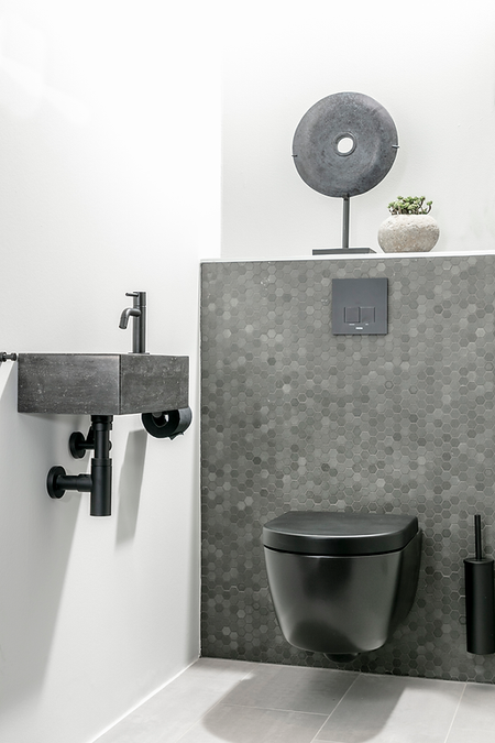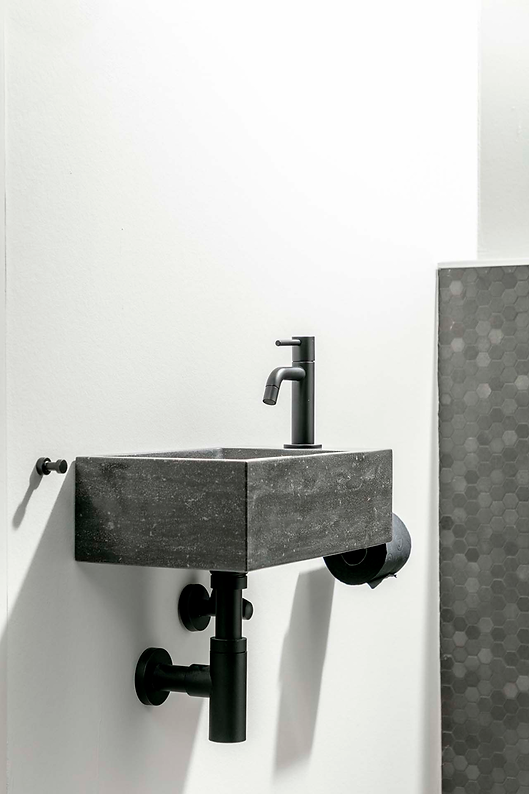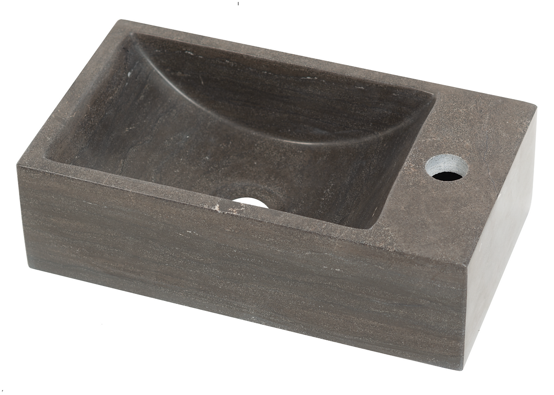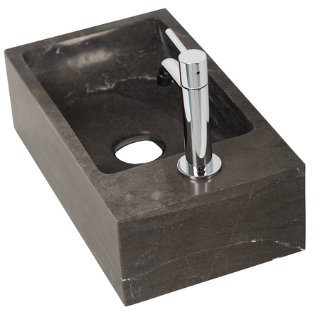 Plieger Stone fontein hardsteen met kraangat rechts - 40x22x12cm - Bak links, hardsteen - Antraciet