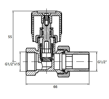 radiator-ventiel+adaptor 15mm 1/2 recht vernikkeld mat-zwart