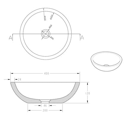 Raw waskom rond 40x12 cm - hardsteen - gezoet