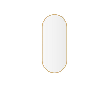 Deze Renk spiegel past door zijn mooie ovale vorm en slanke geborsteld messing lijst perfect in moderne en minimalistische interieurs. De strakke afwerking zorgt voor een rustige en tijdloze uitstraling. Dankzij het compacte formaat van 30x70 cm is de spiegel ideaal voor kleinere (toilet)ruimtes zonder dat dit ten koste gaat van de uitstraling. De spiegellijst is gemaakt van aluminium, waardoor hij duurzaam en vochtbestendig is.