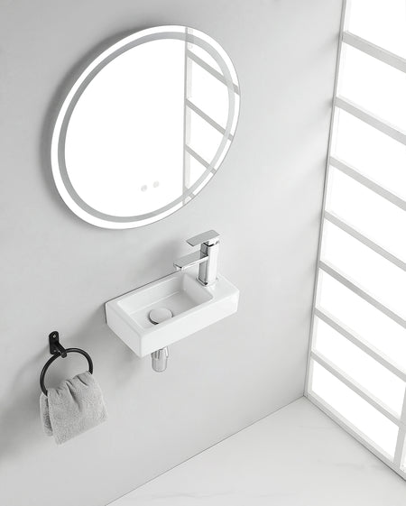 Rhea S mini fontein rechts - 36,5 x 18 x 9 cm - Keramiek glans wit