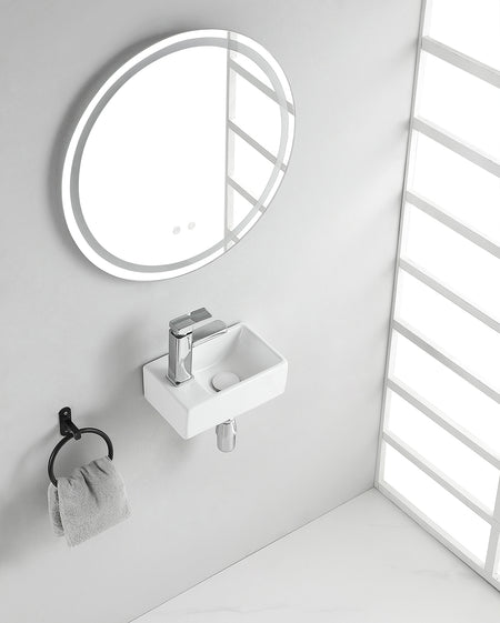 Rhea XXS fontein links - 30,5 x 18 x 11 cm - Keramiek glans wit