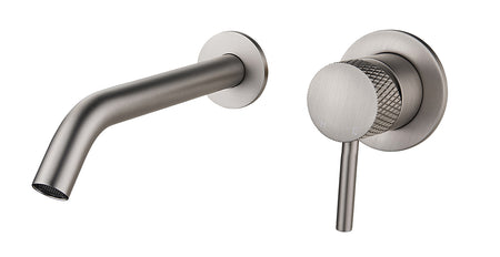 Ribbd inbouw-wastafelmengkraan eenhendel geborsteld staal