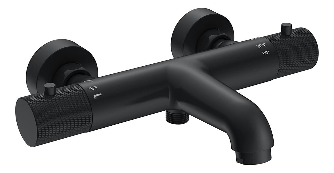 Ribbd thermostatische badmengkraan hartafstand 15 cm mat zwart