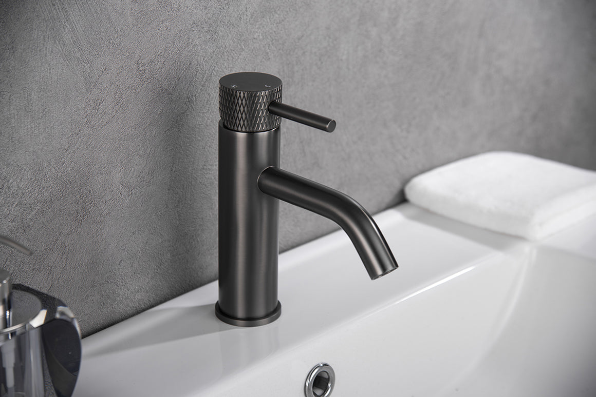 Ribbd wastafelkraan met coldstart gunmetal PVD