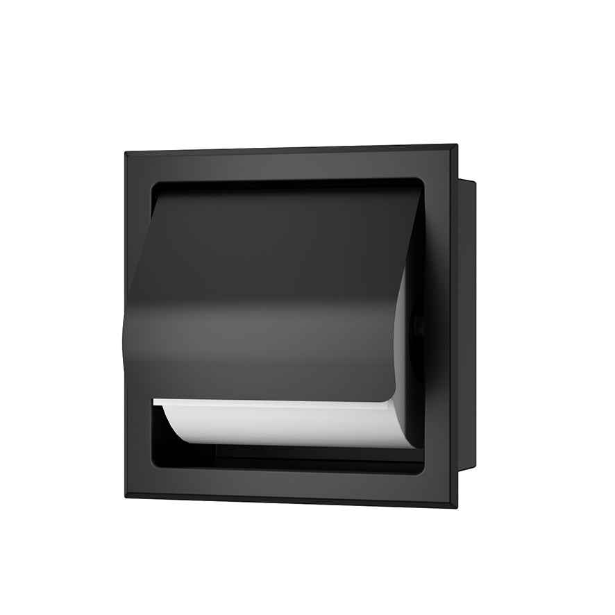 Rocko toiletrolhouder met klep inbouw mat zwart