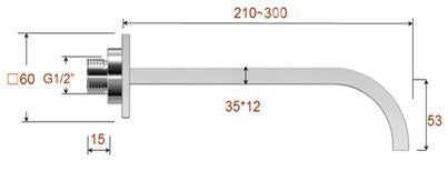 Rombo baduitloop vierkant 30 cm 1/2'' chroom
