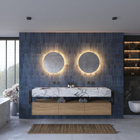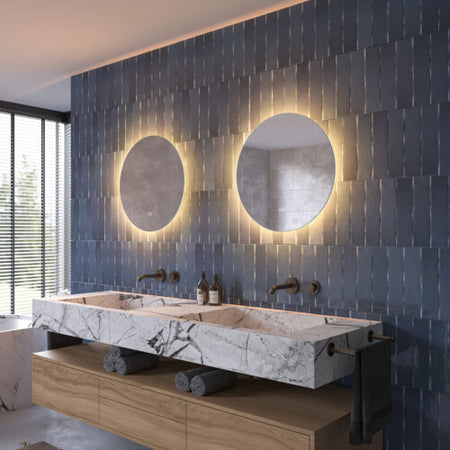 Deze trendy, ronde badkamer spiegel heeft een diameter van 60 cm en is van alle gemakken voorzien, zoals verlichting, spiegelverwarming en een praktische, dubbele touch schakelaar om de verlichting mee te dimmen en de gewenste lichtkleur mee in te stellen, handig!