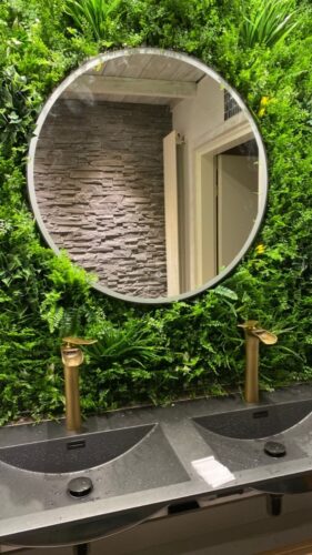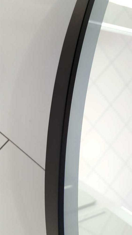 Deze moderne ronde badkamer spiegel is rondom voorzien van een stoer, mat zwart frame, erg fraai!