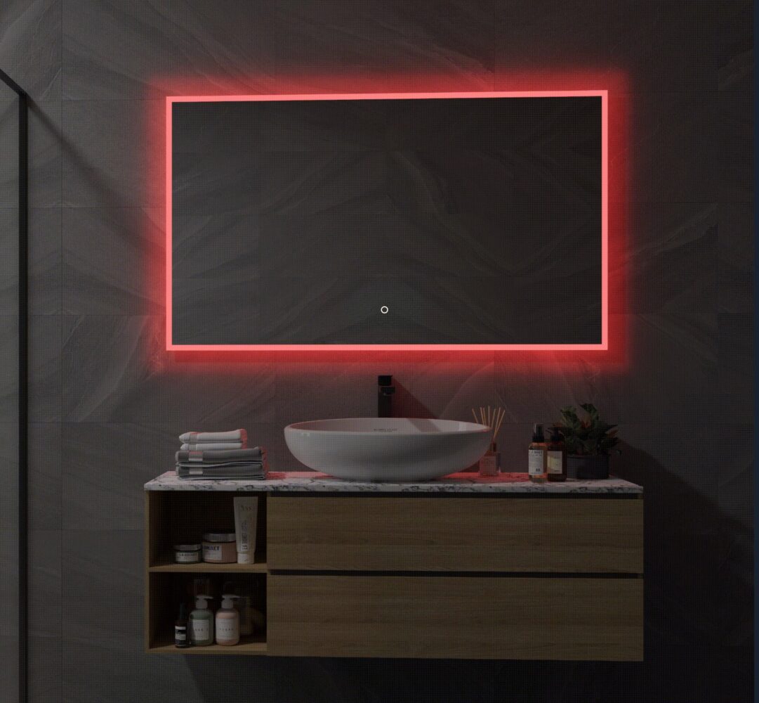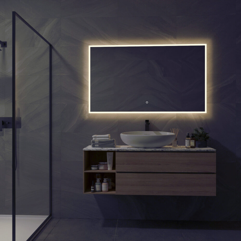 Naast RGB verlichting is deze spiegel voorzien van een groot verwarmingselement. Deze wordt in- en uitgeschakeld met de geïntegreerde touch sensor in het spiegelglas.
