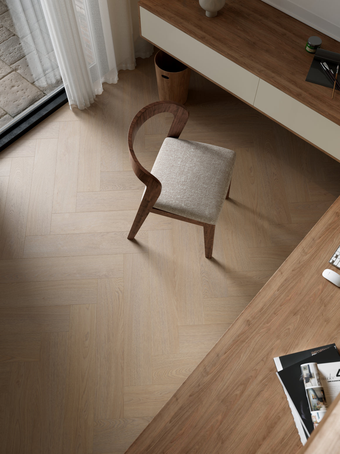 De visgraat planken uit de Belakos pvc-collectie zijn ideaal voor zowel moderne als klassieke interieurs. Het visgraatpatroon benadrukt een elegante en authentieke uitstraling. De Belakos pvc-vloeren zijn geschikt voor zowel woninginrichting als projectinrichting.