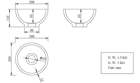Tessa waskom rond 20 x 11 - solid surface - mat wit