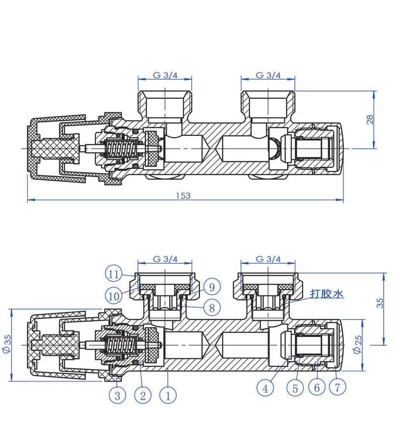 thermostatisch 3/4 onderblok haaks-rechts geborsteld staal
