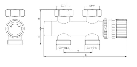 thermostatisch 3/4 onderblok recht chroom