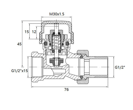 Thermostatische radiatorventiel 1/2''x15mm recht - mat zwart