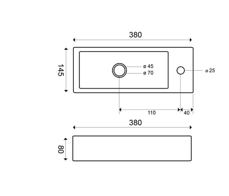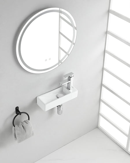 Trim mini fontein rechts - 38 x 14 x 8 cm - Keramiek glans wit